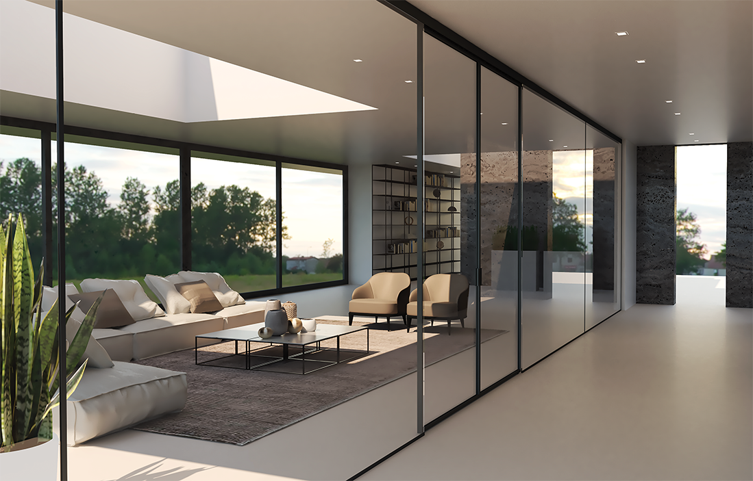 In our 5000 sqm manufacturing plant, we produce fittings for exterior and interior glass systems, i.e. patch fittings, hydraulic hinges, door rails, floor springs, sliding systems, profiles for fixed panels either for shop-fronts or for interior partitions.